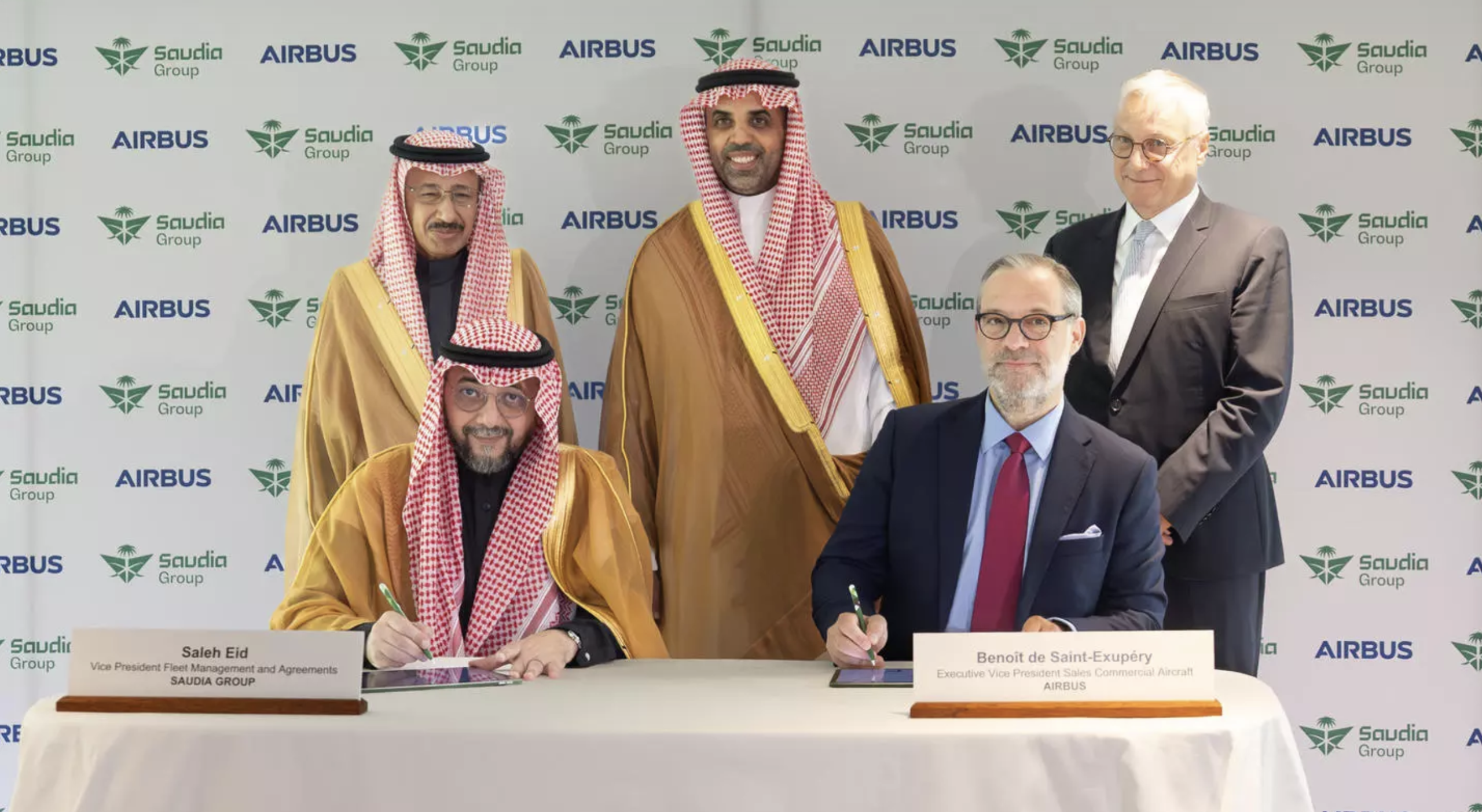 The agreement was announced at a signing ceremony held at Airbus’ facilities in Toulouse in the presence of His Excellency Engr. Ibrahim Al-Omar, Director General of Saudia Group, Christian Scherer, CEO Commercial Aircraft at Airbus, Saleh Eid, Vice President of Fleet Management and Agreements at Saudia Group and Benoît de Saint-Exupéry, EVP Sales Commercial Aircraft at Airbus.