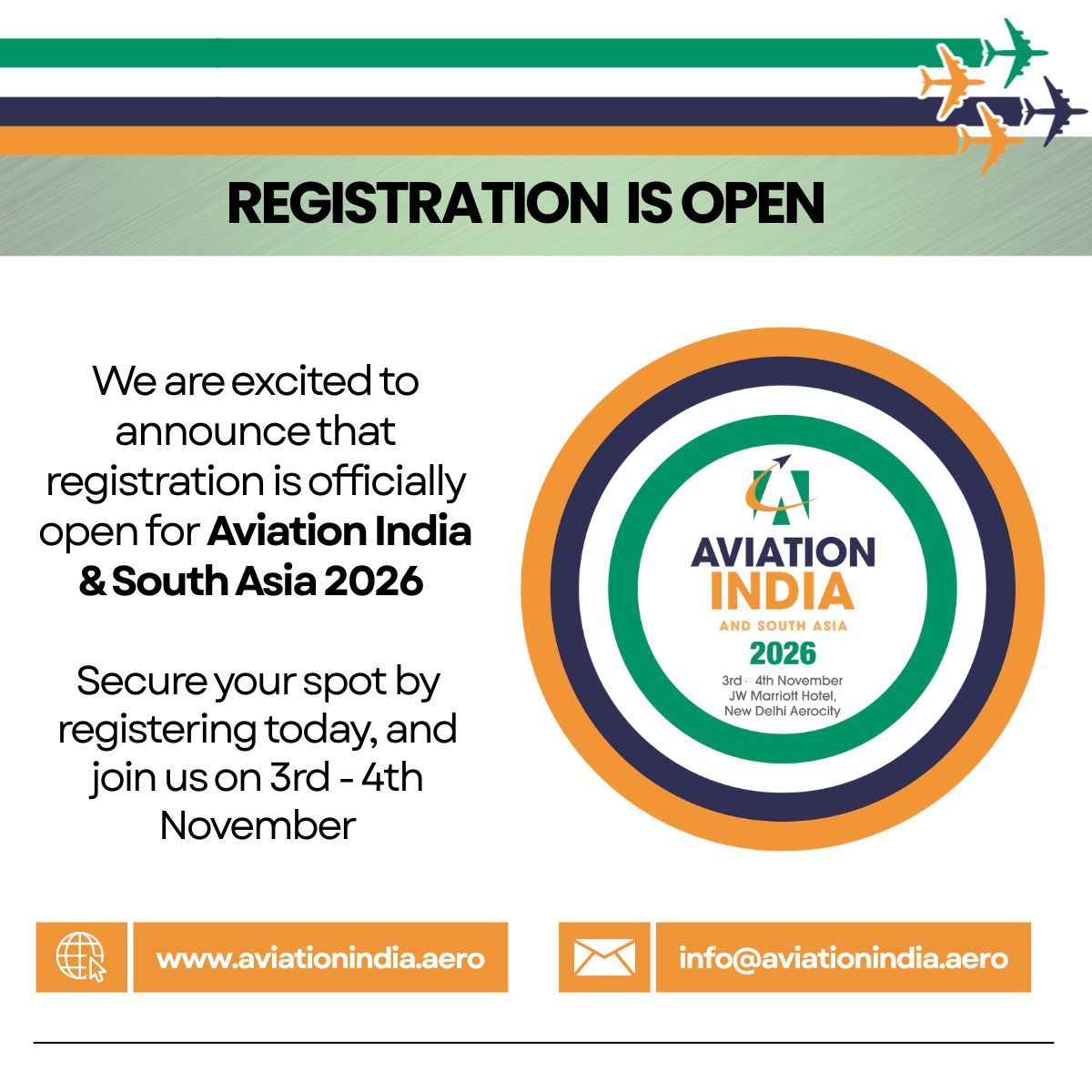 India – Registration is now open for the Aviation India and South Asia Summit & Exhibition 2026, scheduled for 3–4 November 2026 at the JW Marriott Hotel, New Delhi Aerocity, bringing together industry leaders including from the pilot training industry to discuss the future of aviation across India and South Asia.