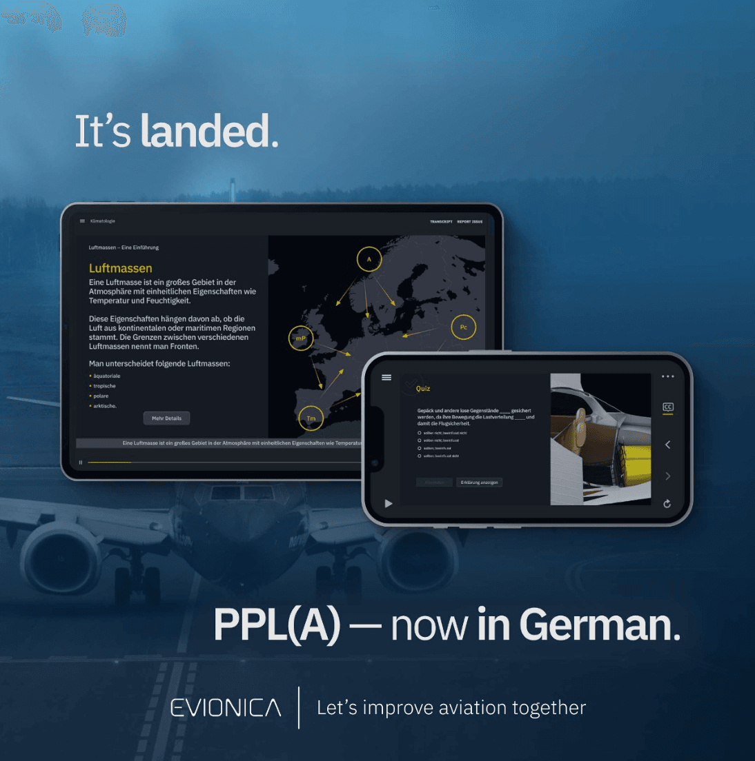 Germany – Evionica, a digital aviation training solutions provider, has launched a German-language PPL(A) distance learning course developed in partnership with Motorflugschule Egelsbach.