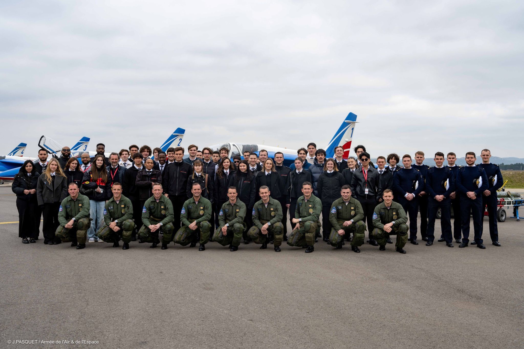 The visit included attending a winter training session of thePatrouille de France, the French Air Force aerobatic team operating Alpha Jets from Dassault Aviation and Dornier.Cadets had the opportunity to engage with the team leader and members of thePatrouille de France.The experience offered a unique perspective for both civilian and navy pilot cadets on advanced formation flying and aerobatics.