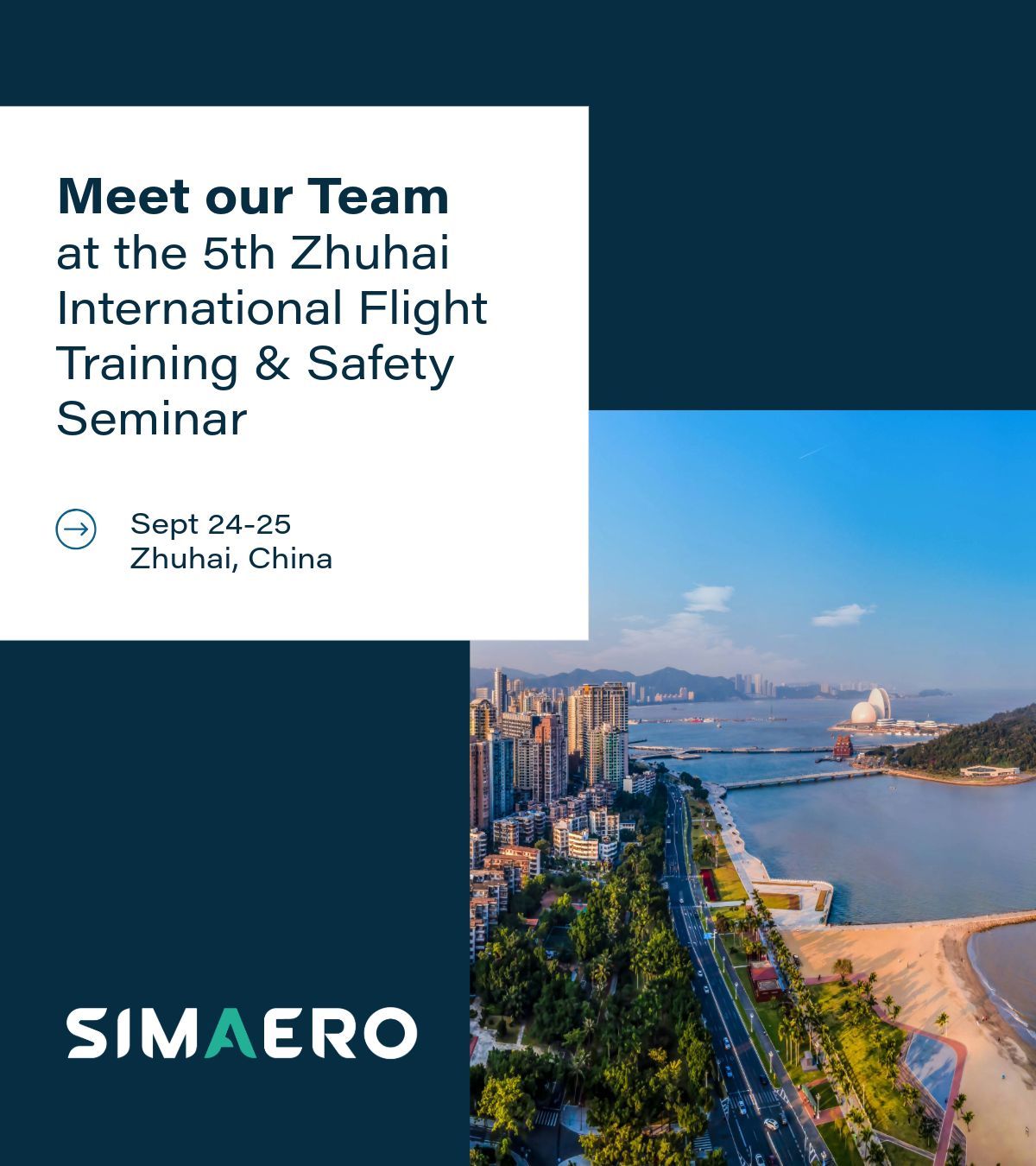 China – Simaero, a global operator of full flight simulator training centers and simulator engineering solution provider, is participating in the 5th Zhuhai International Flight Training & Safety Seminar on 24–25 September 2025.