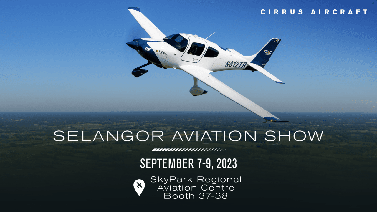 Cirrus Aircraft announced it will be joining the Selangor Aviation Show 2023 in Malaysia from September 7-9 at SkyPark Regional Aviation Centre. Cirrus Aircraft will be at booths 37-38 and will showcase their best-selling SR Series and TRAC SR Series for flight training.