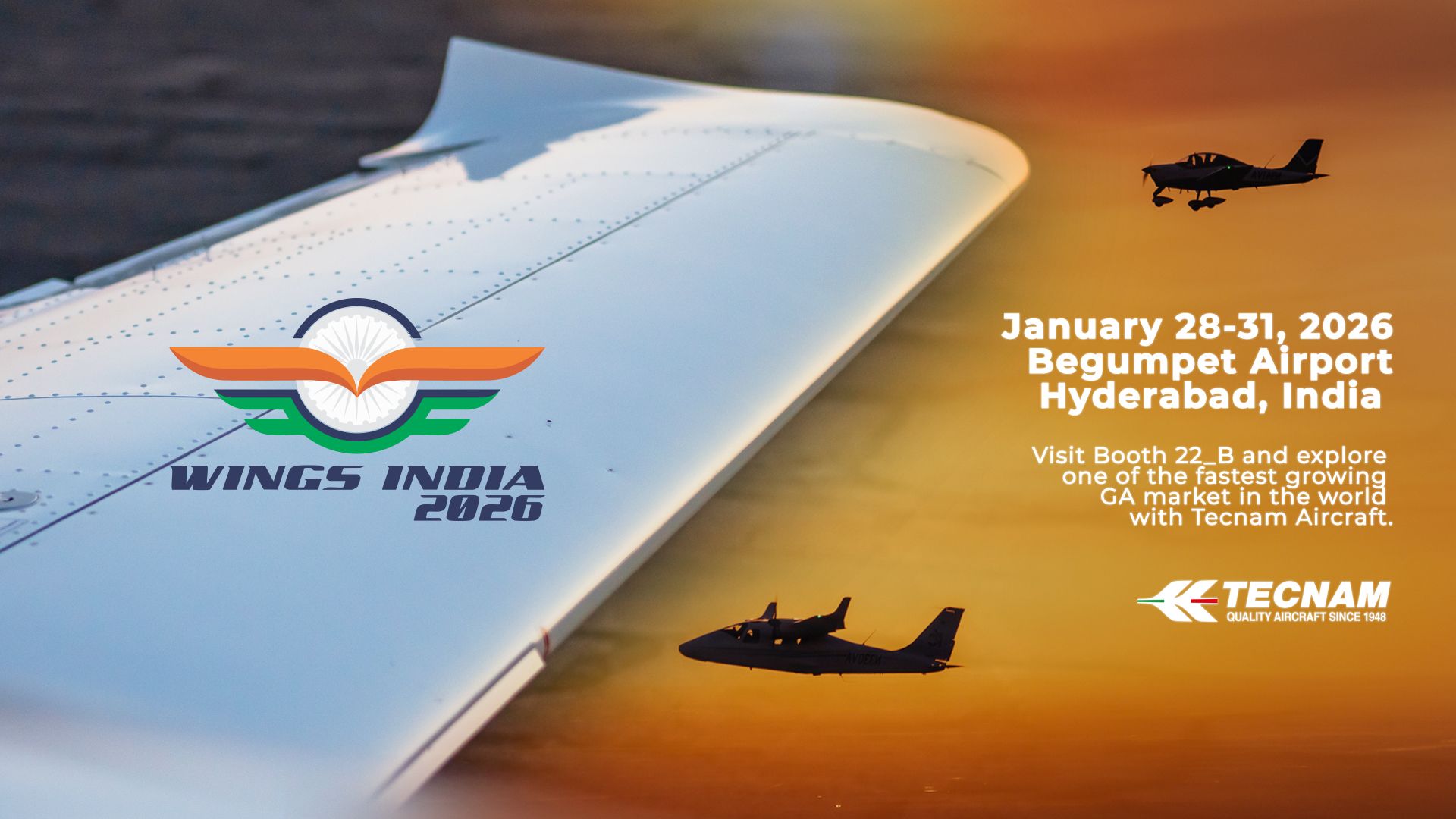 - To inaugurate the direct engagement model, Tecnam is participating in Wings India 2026 at Hyderabad Begumpet Airport (28–31 January 2026) where customers and industry partners can meet the Tecnam factory team at booth 22B.
