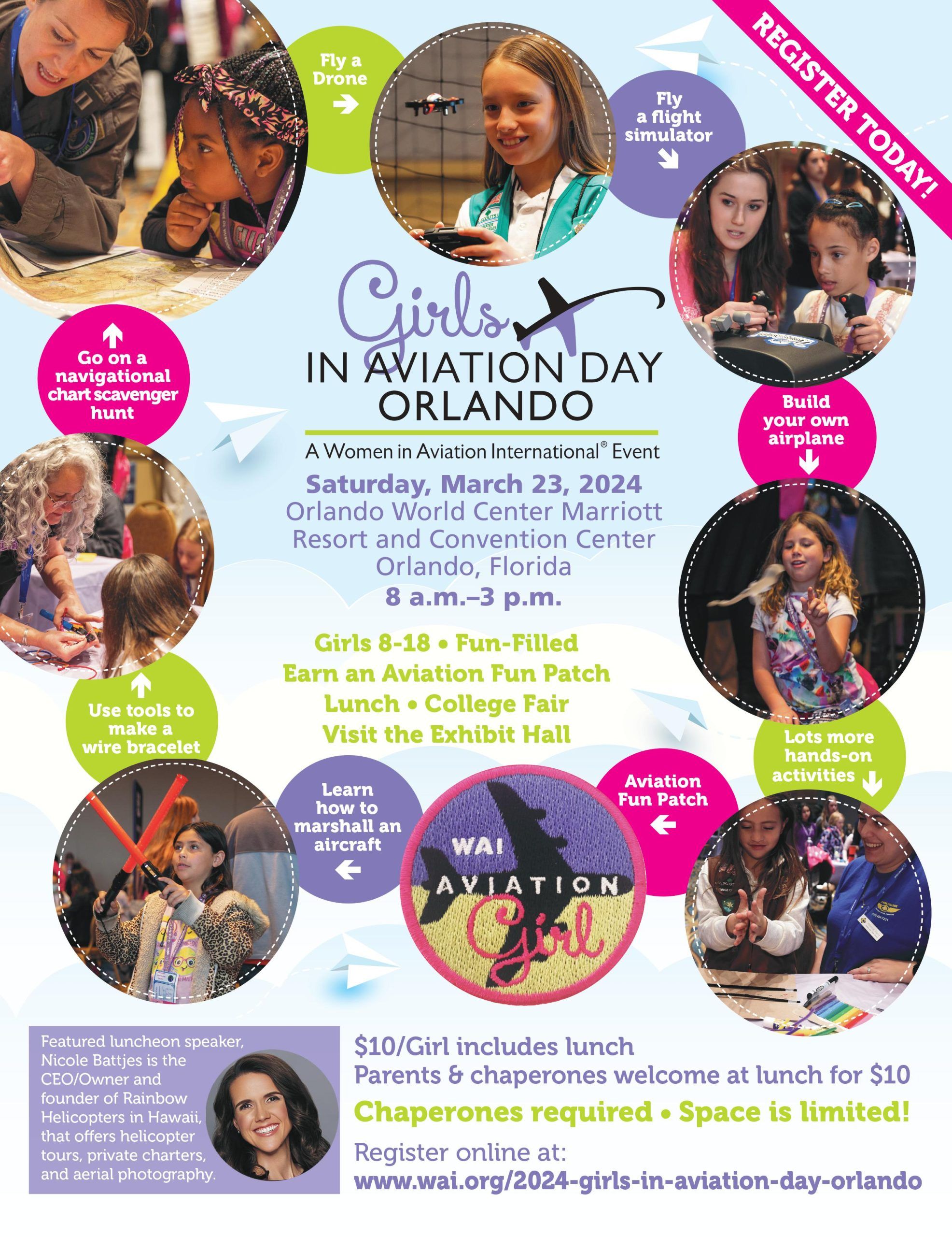 The conference is open to girls aged 8-18 and promises a day filled with aviation-themed fun. Participants will have the opportunity to earn an Aviation Fun Patch, explore a college fair, enjoy lunch, and visit the Exhibit Hall for an immersive experience in the world of aviation.